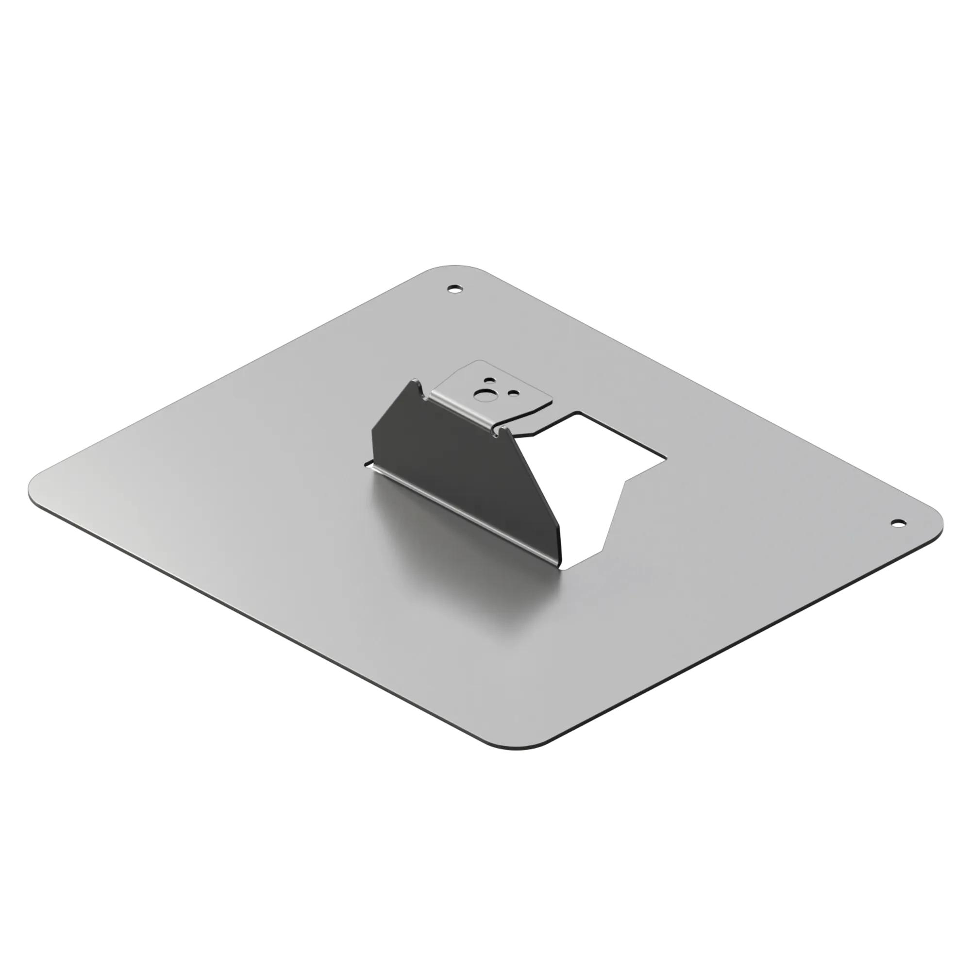 Lastfördelande platta som används i kombination med infästningsplattor och konsoler för att minska antal infästningar i taket där det inte finns behov. Placeras löst på taket och monteras till solpanelskenan med en byggskruv Ø6,3 × 19 mm. Inbyggda sidostöd håller solpanelskenan på plats innan den skruvas fast. Ger 60 mm fri höjd under skenan och 320 × 280 mm lastfördelande yta.