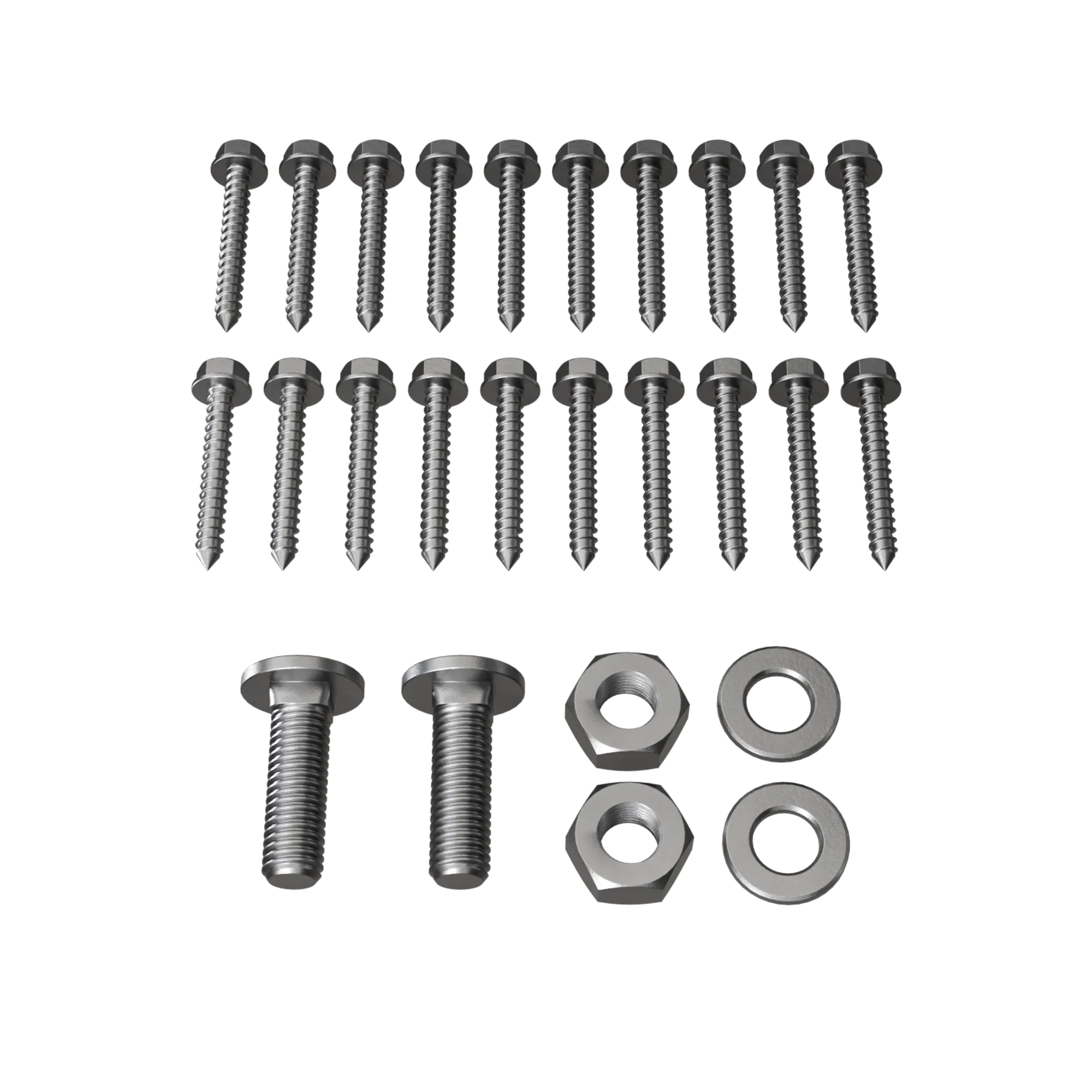 Skruvsats till fästplåt fasadstege för träfasad. Räcker till 2 st fästplåtar.